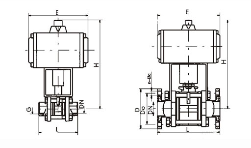 GUQ高真空氣動(dòng)球閥活套連接尺寸: