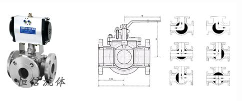 二、氣動三通球閥 介質(zhì)流向原理